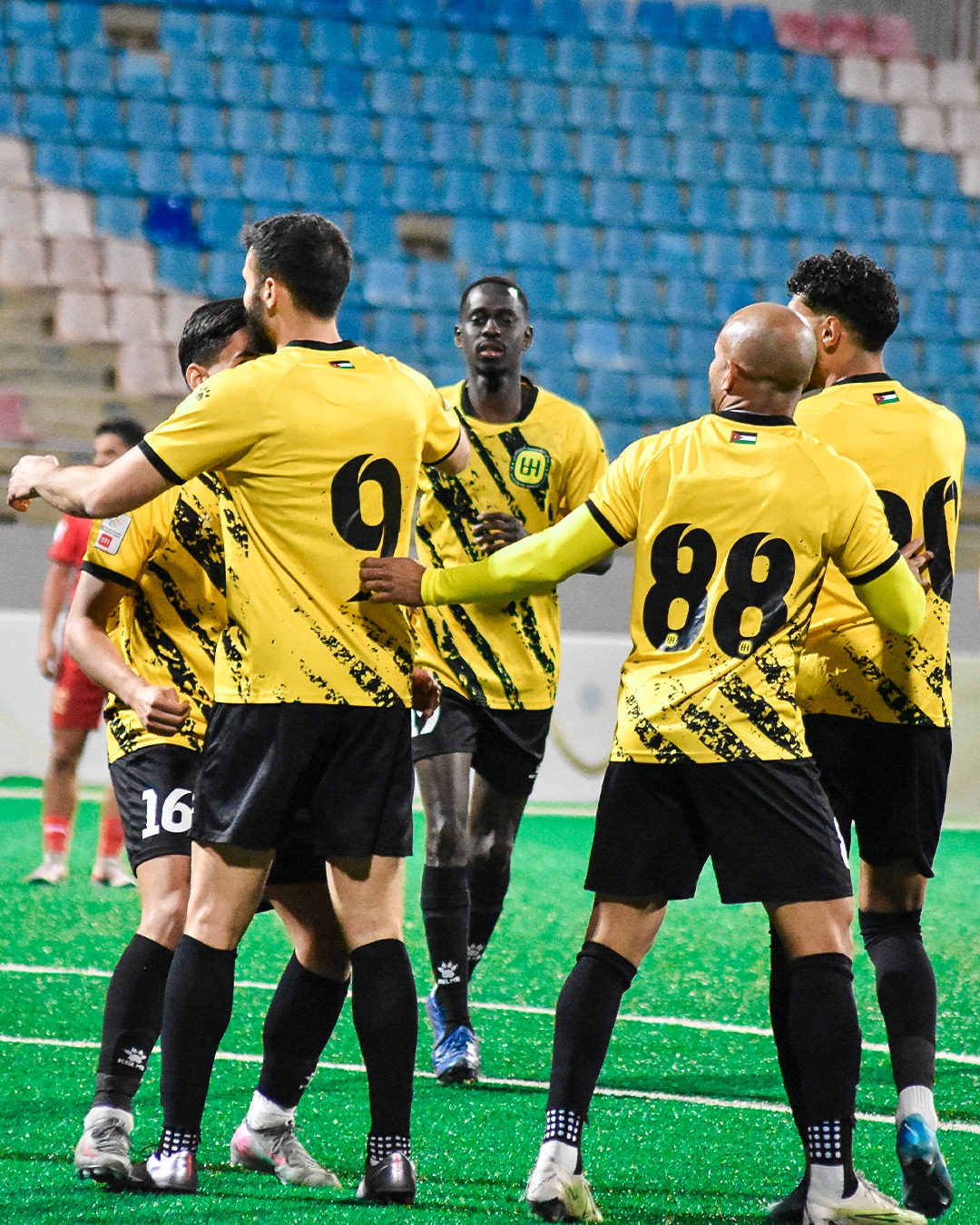 وسجل فريقه الهدف الثاني في اللقاء قبل نهاية الشوط الأول بعشرة دقائق، وبعدها قلص الضيوف الفارق لتصبح النتيجة هدفين لهدف قبل نهاية الفترة الأولى بلحظات، وليظهر بعدها نجم الأردن من جديد ويستغل الدربكة الحاصلة في دفاع الخصم، وينسل ما بين المدافعين ويضع كرة بأريحية على يسار الحارس، ويعلن عن هدفاً ثالثاً لفريقه، والشخصي الثاني له.