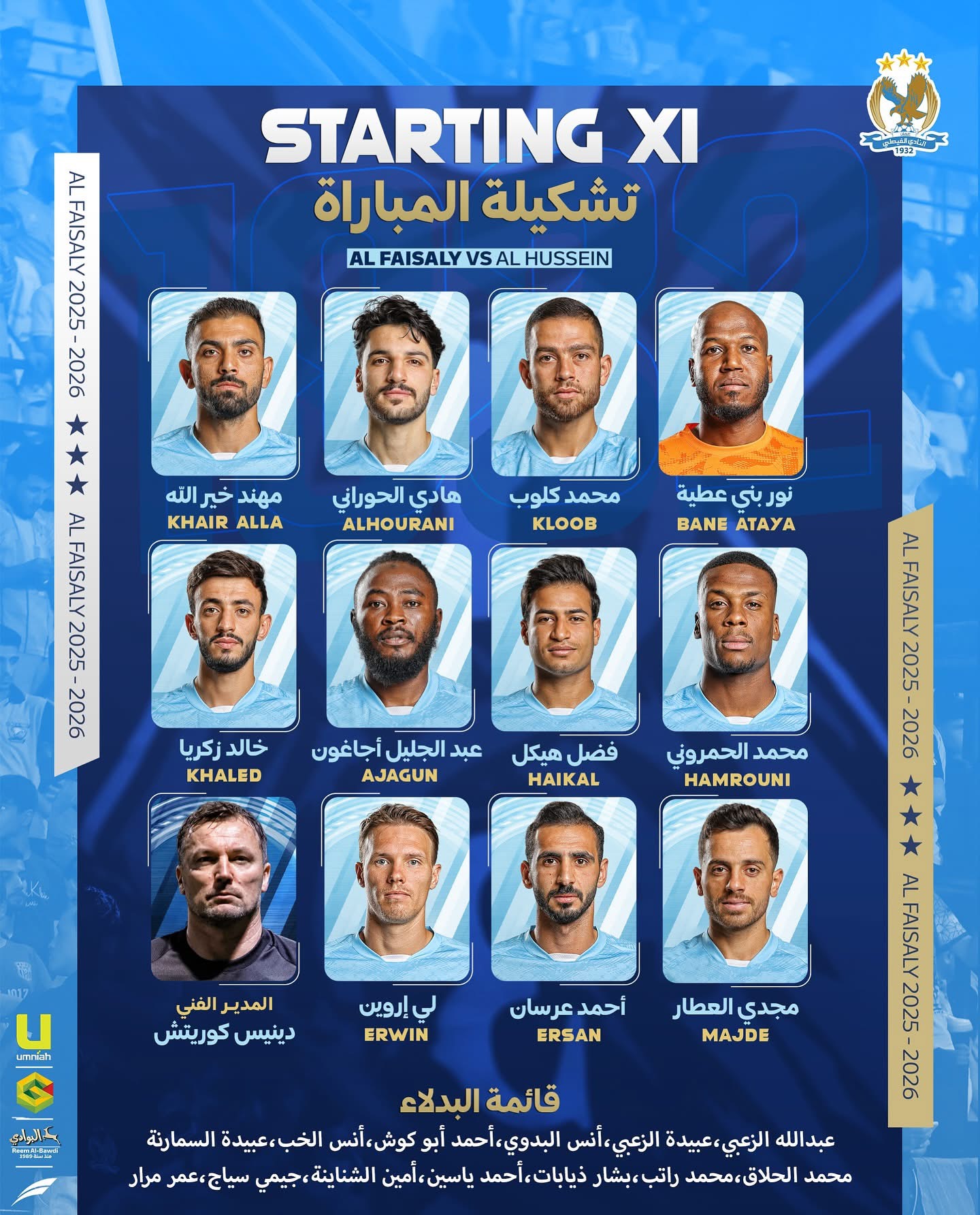 شاهد البث المباشر لقمة الفيصلي والحسين .. وتعرف على تشكيلة الفريقين