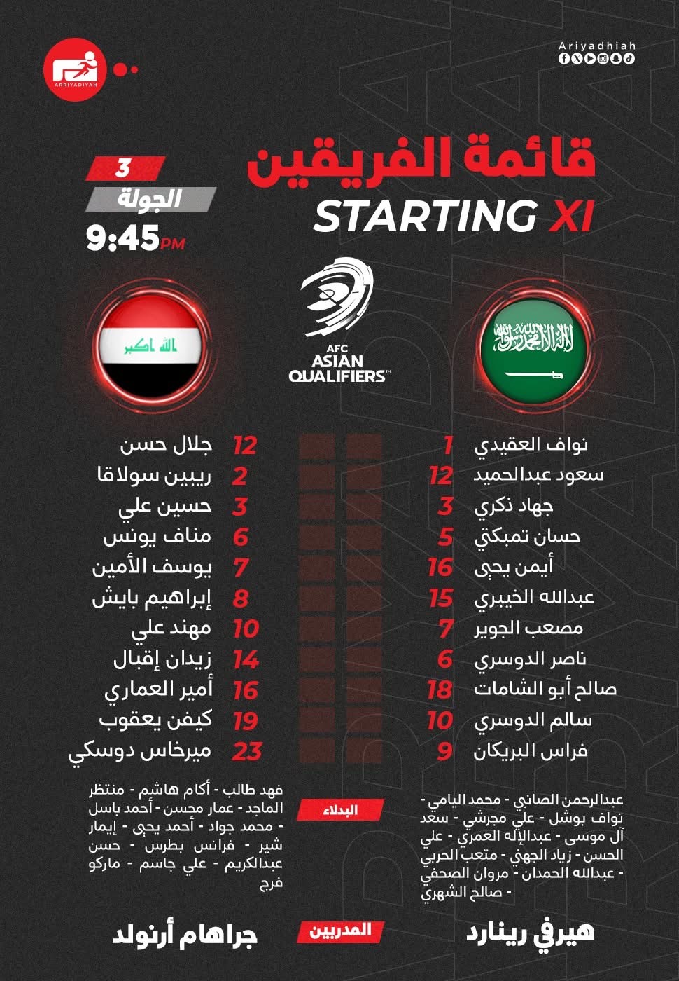 شاهد البث المباشر لمواجهة منتخبي السعودية والعراق .. وتعرف على تشكيلة المنتخبين