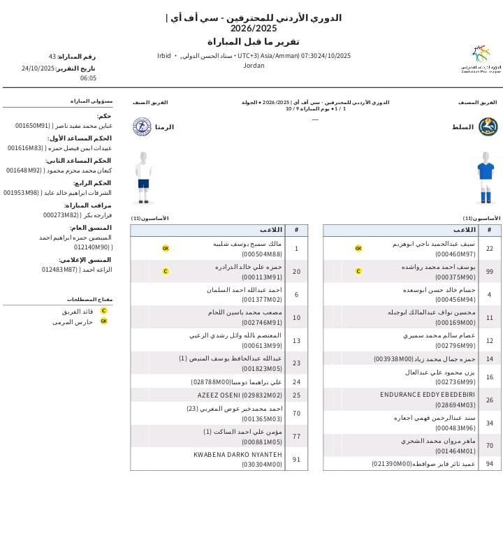شاهد البث المباشر امواجهة السلط والرمثا .. وتعرف على تشكيلة الفريقين