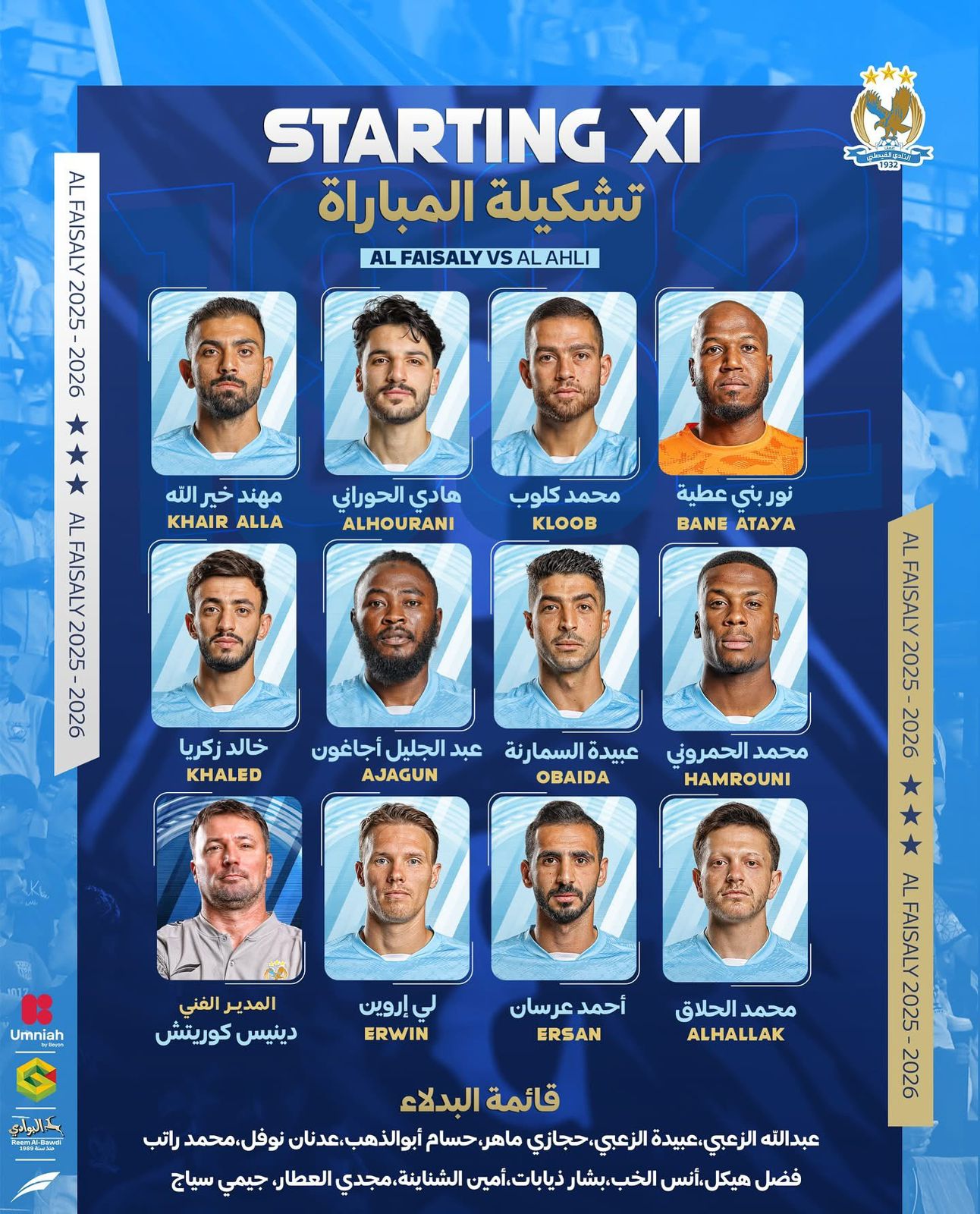 شاهد البث المباشر لمواجهة الفيصلي والأهلي .. وتعرف على تشكيلة الفريقين