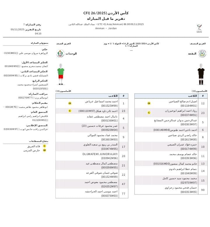 شاهد البث المباشر لمواجهة الوحدات والبقعة… وتعرف على تشكيلة الفريقين