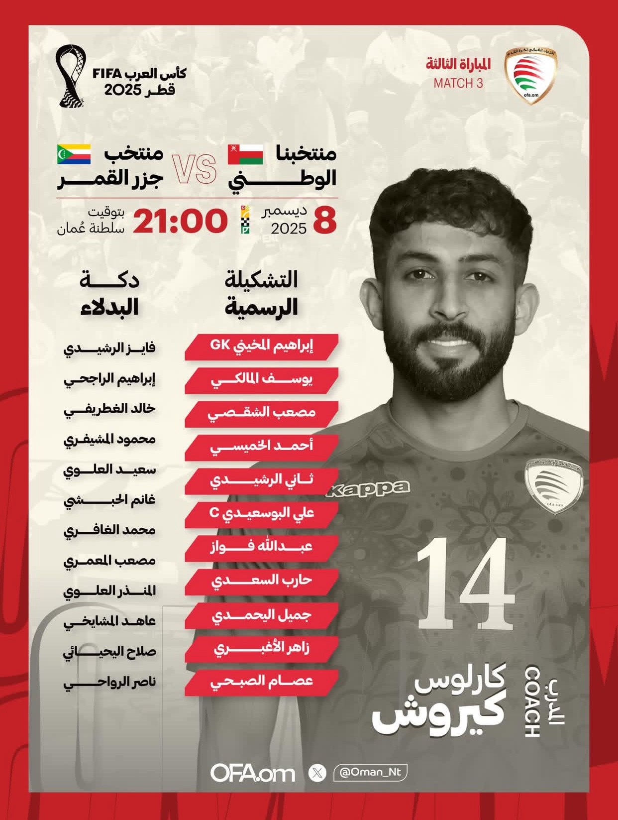 شاهد البث المباشر لمواجهة عُمان وجزر القمر… وتعرف على تشكيلة المنتخبين