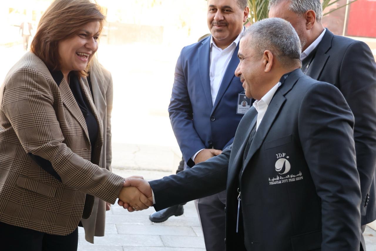 جريدة الملاعب - انطلاقاً من الرؤية الجديدة لمجلس ادارة شركة الاسواق الحرة الحالي ، وفي إطار نهج المتابعة الميدانية وتعزيز الحضور الإداري في الميدان قامت رئيسة مجلس إدارة شركة الأسواق الحرة الأردنية خلود السقاف اليوم بزيارة تفقدية إلى الأسواق الحرة في معبر جابر الحدودي بين المملكة الأردنية الهاشمية والجمهورية العربية السورية ، يرافقها عدد من مدراء الإدارات المعنية في الشركة ، حيث تم الإطلاع بشكل مباشر على واقع سير العمل وكافة الجوانب التشغيلية والتجارية في السوق .