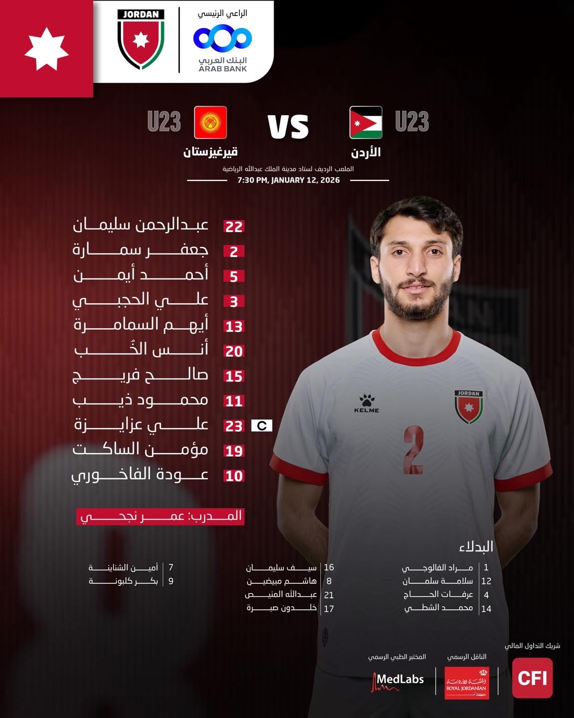 شاهد البث المباشر لمواجهة نشامى ت23 ومنتخب قرغيزستان .. وتعرف على تشكيلة المنتخبين