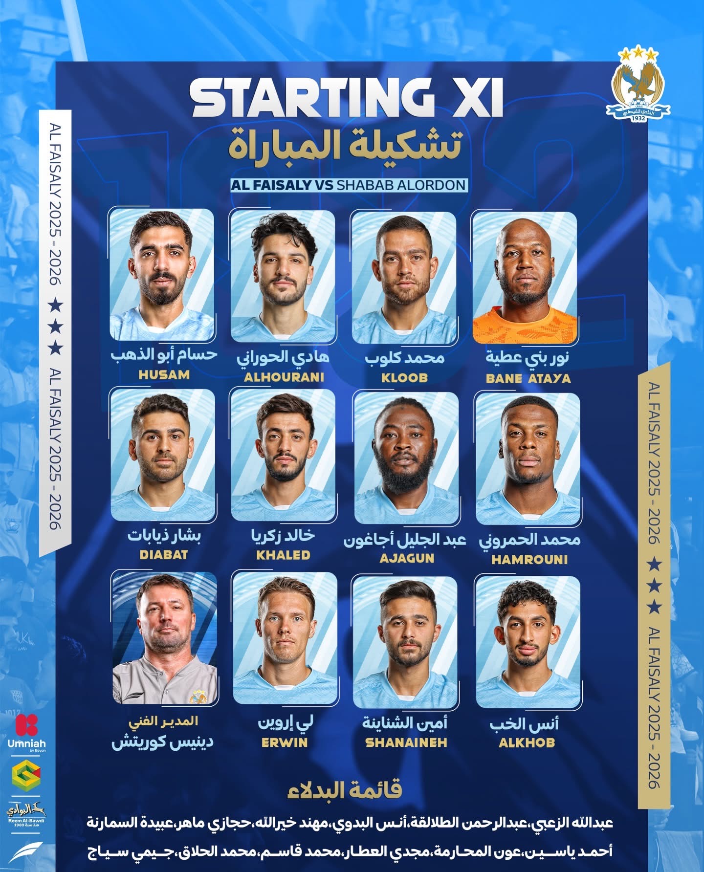 شاهد البث المباشر لمواجهة الفيصلي وشباب الأردن .. وتعرف على تشكيلة الفريقين