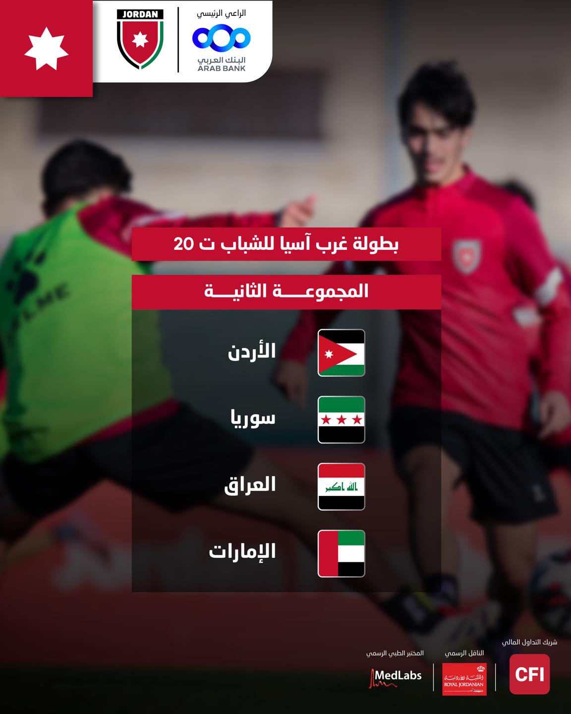 جريدة الملاعب - أسفرت قرعة بطولة اتحاد غرب آسيا الرابعة للشباب (تحت 20 عامًا) عن وقوع المنتخب الوطني في المجموعة الثانية إلى جانب منتخبات سوريا، العراق، والإمارات.
