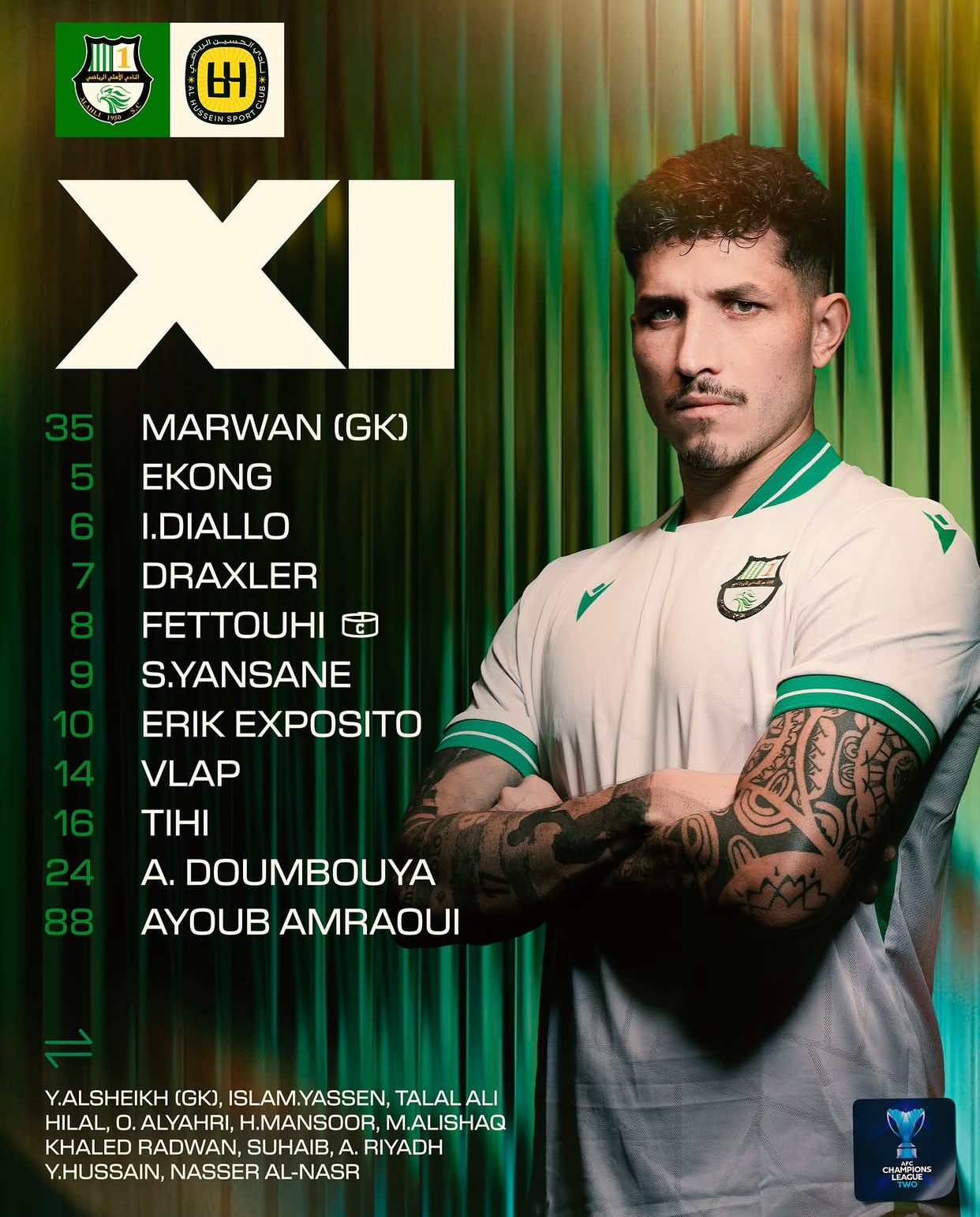 شاهد البث المباشر لمواجهة الحسين والأهلي والقطري… وتعرف على تشكيلة الفريقين