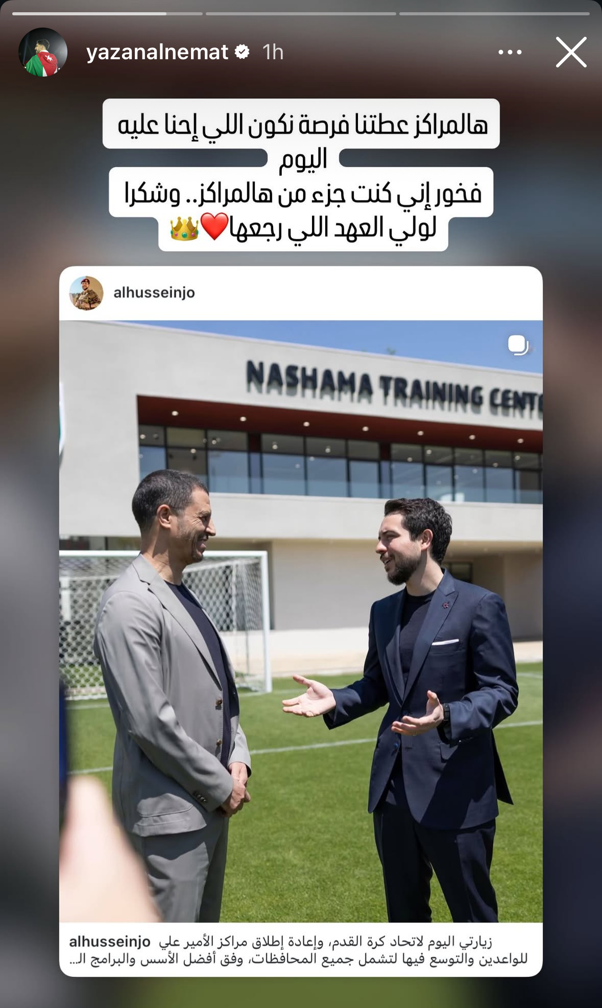 من جهته، أكد يزن النعيمات فخره بكونه أحد خريجي هذه المراكز، مشيرًا إلى أنها منحتهم الفرصة ليصلوا إلى ما هم عليه اليوم، موجّهًا الشكر لولي العهد على إعادة إحيائها، في خطوة تعزز مستقبل كرة القدم الأردنية.