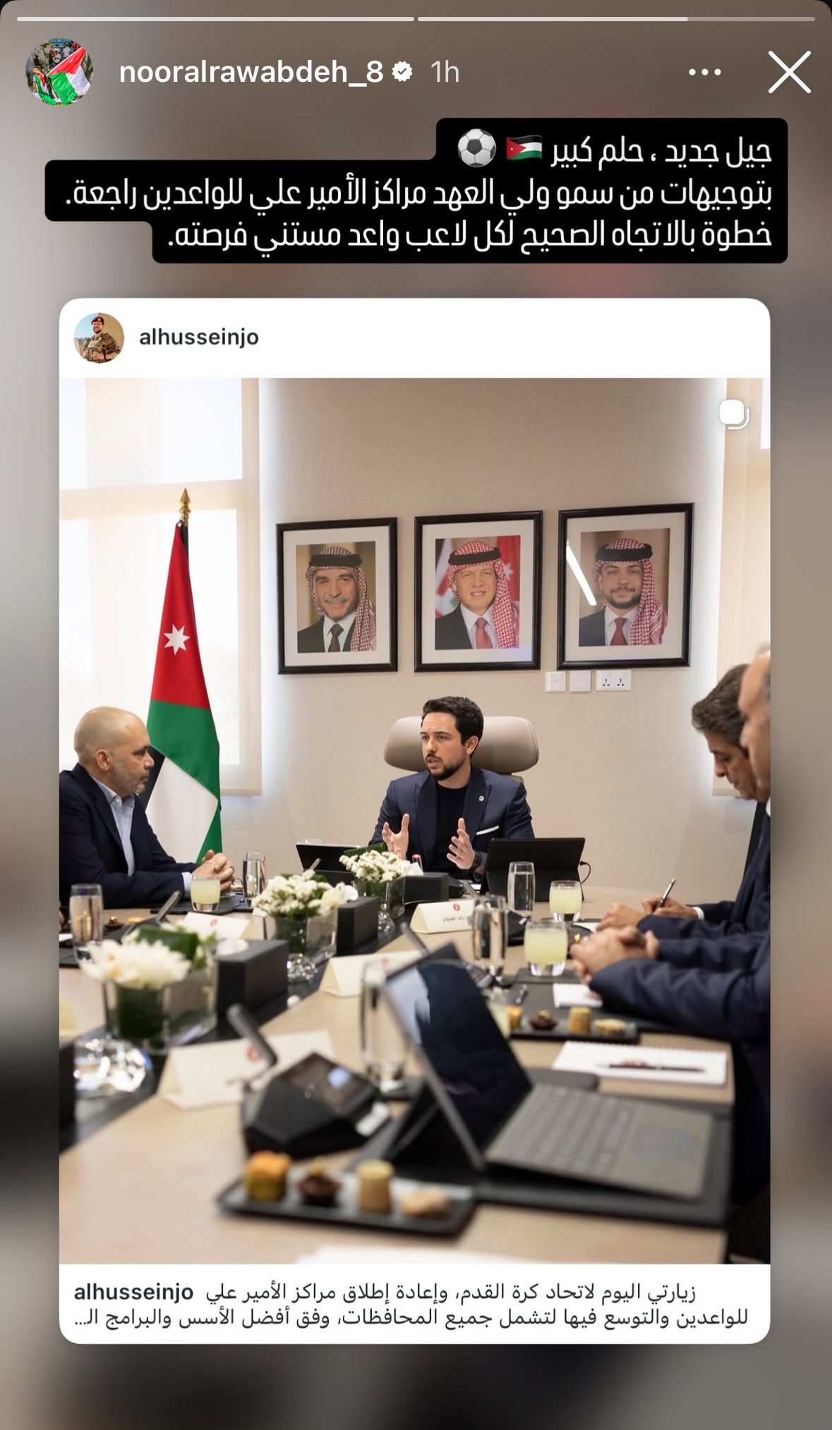كما أشاد النجم نور الروابدة عبر الستوري بهذا القرار:" هذا جيل جديد ، حلم كبير *.بتوجيهات من سموولي العهد مراكز الأمير علي للواعدين راجعة، معتبرًا ذلك خطوة بالاتجاه الصحيح لكل لاعب واعد مستني فرصته".